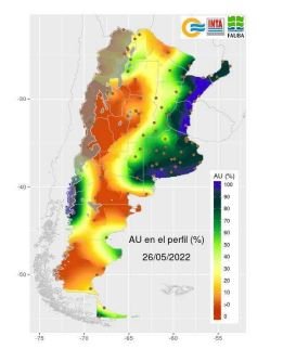 Figura 2: Agua útil (%). Fuente SMN-INTA-FAUBA. Publicado 27 de mayo 2022