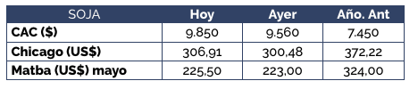 En la rueda de esta tarde, la oferta abierta de las fábricas por soja se ubicó en $ 10.000/t para la descarga, registrando un aumento de 150 pesos respecto la sesión previa. Además, se ofrecieron $ 10.200/t por la oleaginosa de condición cámara con entrega en el mes de junio con pago ahora.