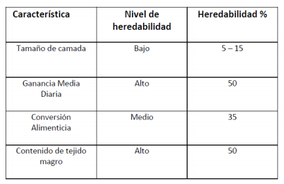Es la proporción de superioridad en una característica que en promedio se transmite a la progenie. Tienen alta heredabilidad aquellos factores genéticos regidos por la interacción entre varios genes (factores genéticos aditivos) como por ejemplo las características productivas (conversión alimenticia, magro, conformación) Las características deseables de selección pueden tener una alta, media o baja heredabilidad. Que una característica tenga baja heredabilidad significa que por selección solo se podrá trasmitir a la descendencia en un bajo porcentaje.