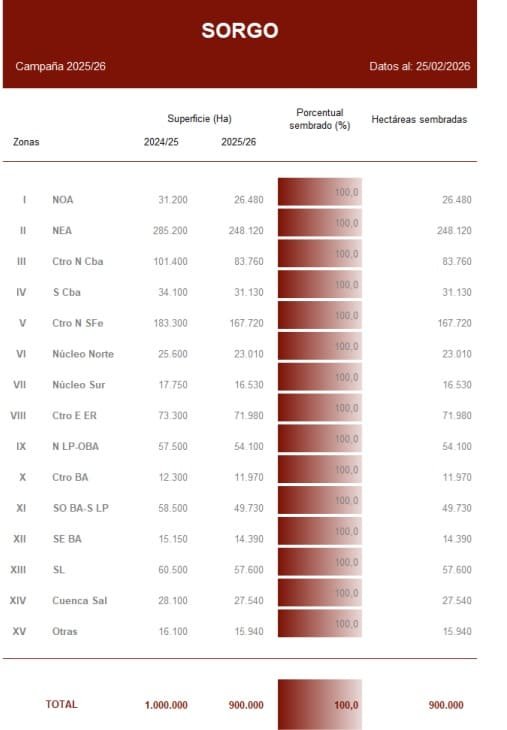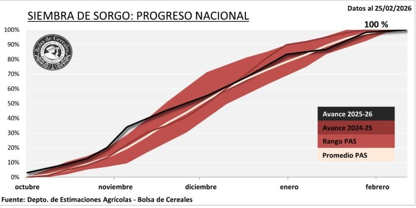 La campaña de sorgo granífero cerró oficialmente la etapa de siembra tras registrar un avance interquincenal de 1,7 puntos porcentuales, completando así la implantación prevista para la presente temporada.