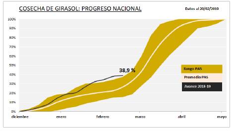 Fin de ciclo del cultivo, campaña 2018/2019, con una superficie sembrada de 123.100 ha, superficie cosechada de 109.630 ha, con un rendimiento promedio de 21,00 qq/ha y una producción de 230.190 tn.