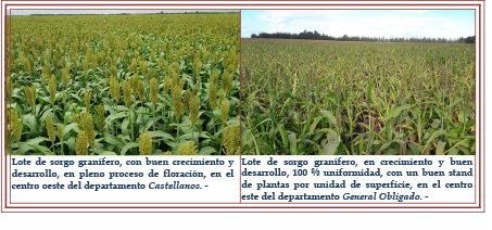 Con desarrollo y crecimiento normal, con disponibilidad de agua útil y sin inconvenientes. El estado sanitario del cultivo se encontró muy bien, en general, con muy buenos resultados de las aplicaciones realizadas, contrarrestando los ataques del barrenador menor (Elasmopalpus lignosellus) y cogollera (Helicoverpa elotopoeon). Dicho control y tratamiento se continuó realizando, de acuerdo a la realidad de cada lote, consecuencia del seguimiento y monitoreo.