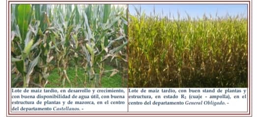 El proceso de picado-embolsado, para autoconsumo, particularmente en las zonas de influencia de las cuencas lecheras, estuvo totalmente paralizado. Las condiciones ambientales de la semana no favorecieron la realización de dicha actividad, recordando que los valores logrados, fueron rendimientos promedios muy similares a los obtenidos en los cultivares de maíz temprano (o de primera), 12 a 13 m/bolsa/ha. Se estimó que lo destinado a auto-consumo sería de un porcentaje relativamente bajo, destinándose el porcentaje restante a grano comercial. El cultivo continuó su desarrollo y crecimiento bajo muy buenas condiciones ambientales, como la buena disponibilidad de agua útil en los perfiles de los suelos, atravezando el período crítico sin inconvenientes, con temperaturas medias diarias aceptables y con un estado sanitario de bueno a muy bueno.