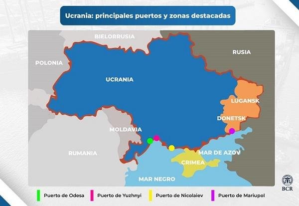 Más del 91% de las exportaciones en Ucrania se despacharon por el Mar Negro en el 2020, de acuerdo con el Servicio Estatal de Estadísticas de este país. Los principales puertos para los commodities agrícolas de Ucrania se encuentran en Yuzhny, Nikolaiev y Odessa, en el sudoeste del país, desde donde se despacharon más de 138 Mt de cargas en 2020, el 86% de los embarques totales de ese año. Las cargas rusas y ucranianas que se embarcan en el Mar Negro atraviesan el estrecho del Bósforo, donde se encuentra la importante ciudad de Estambul, en Turquía. A partir de su acceso al Mar Mediterráneo, desde allí continúan sus diversas rutas hacia los principales destinos de exportación.