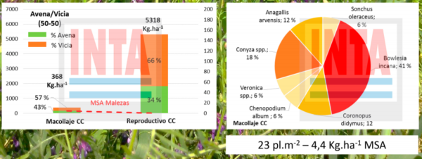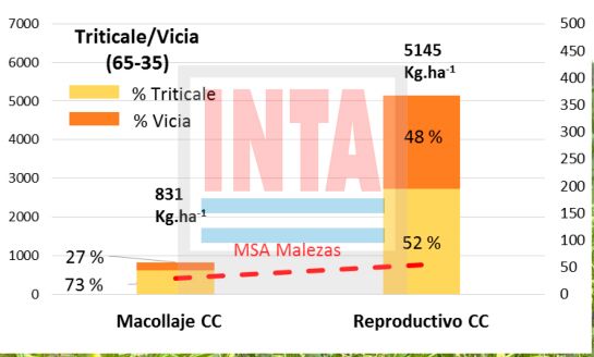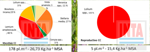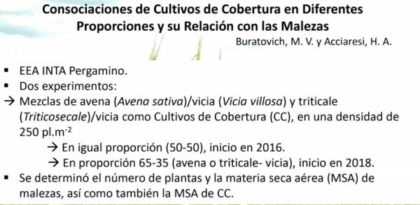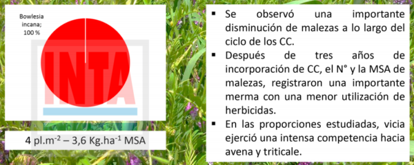Después de tres años de incorporación de Cultivos de Cobertura, el número y la MSA de malezas, registraron una importante merma con una menor utilización de herbicidas según las observaciones del grupo Malezas de la Estación Experimental Pergamino.