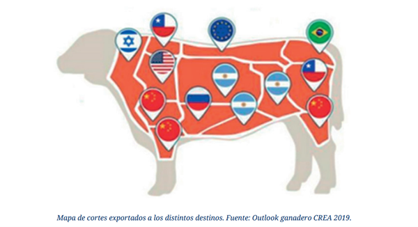 Una representación muy gráfica presentada en el Outlook ganadero del movimiento CREA en 2019 permite comprender muy claramente esta complementariedad de mercados con la que cuenta Argentina.