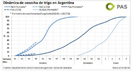 Las labores de recolección de trigo continúan avanzando sobre las regiones del NOA y NEA, mientras que en el Centro-Norte de Santa Fe se relevaron las primeras cosechas de lotes tempranos.