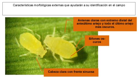 Muchos reportes mencionan a la especie Melanaphis sacchari “pulgón amarillo de la caña de azúcar” como la responsable de los daños causados al cultivo de sorgo. Sin embargo, en el caso particular de Entre Ríos, se requiere su confirmación por un taxónomo, etapa en la cual nos encontramos, dado que se trataría de una nueva especie para la provincia.
