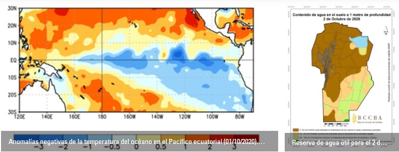 Al analizar la temperatura superficial del mar en el océano Pacífico ecuatorial, a inicios de la primavera en el hemisferio sur en el año 2020, se observaron anomalías negativas, lo que marcó el inicio de condiciones climáticas de La Niña, evento que se mantuvo hasta el mes de marzo. El efecto de La Niña en la provincia de Córdoba causa precipitaciones por debajo de la media.