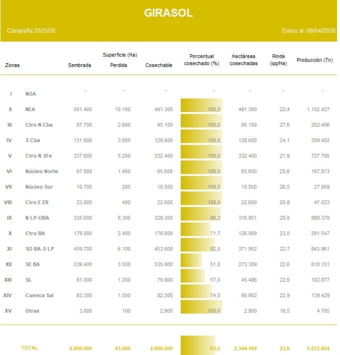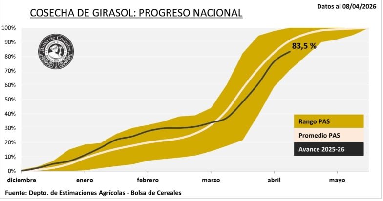 La cosecha de girasol pierde ritmo en la Argentina como consecuencia de las lluvias registradas en los últimos días, que afectan la transitabilidad de los lotes y ralentizan las labores en amplias regiones productivas.