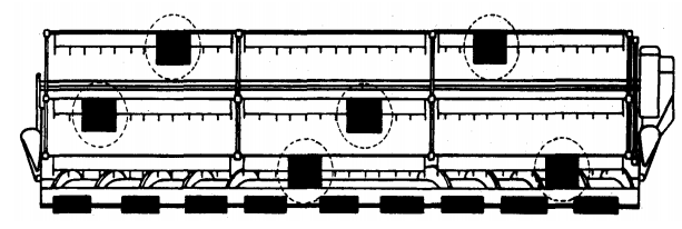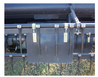 Otra posibilidad para aumentar la alimentación es colocar gomas en el molinete (Figuras 1 y 2) que contribuyen a empujar a las plantas recién cortadas para que puedan ser transportadas por el molinete. Estas gomas se colocan a modo helicoidal, colgadas de los barrales del molinete a través de flejes de chapa y se fijan a los dientes a través de precintos plásticos. Las gomas pueden ocupar el espacio equivalente a dos o tres dientes de ancho y deben ser más largas que los dientes (aproximadamente 10 cm), para que peine la barra de corte y tenga mayor capacidad de empuje del material cortado. Por su ancho, pasan por arriba de las guardas sin afectar las secciones de corte.