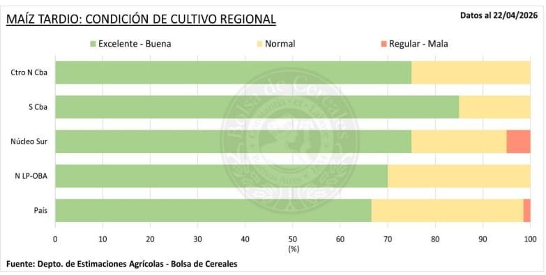 El estado general del cultivo es positivo: el 98% de los lotes presenta condiciones entre Normal y Excelente, lo que refuerza las expectativas productivas en esta etapa crítica.