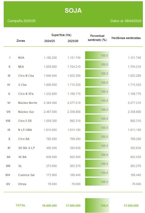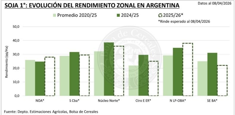 Bajo este contexto, se mantiene sin cambios la proyección de producción nacional en 48,5 millones de toneladas, en una campaña que continúa marcada por la variabilidad climática pero con señales positivas en los rindes iniciales.