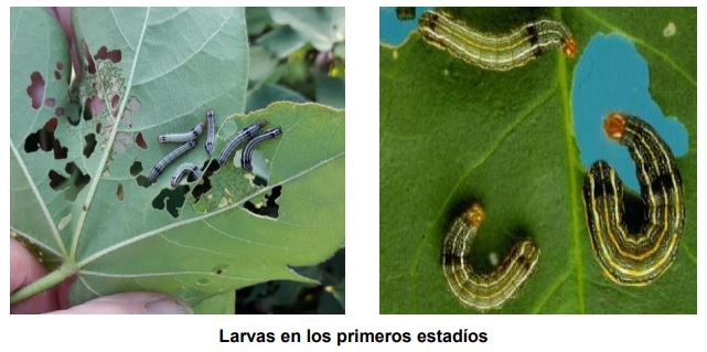 Según Acosta et al. (2015) en Argentina, el género Spodoptera está representado por seis especies: S. frugiperda, S. cosmiodes, S. eridania, S. albula, S. dolichos y S. androgea, de las cuales solo las 4 primeras han sido reportadas atacando el algodón. La mayoría causa daños en las hojas y algunas de ellas adicionalmente en las brácteas, flores y frutos siendo S. frugiperda atacando y perforando las cápsulas, la especie de mayor importancia económica del género en el algodón (Gondim et al., 1999).
