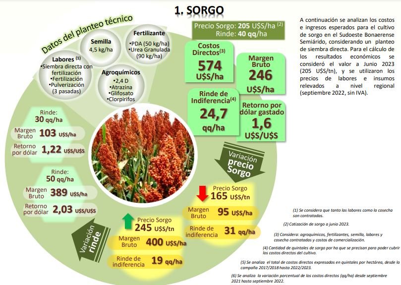 En el presente informe se analizan los costos e ingresos estimados para los cultivos de sorgo, maíz, soja y girasol en la campaña 2022/2023, teniendo en consideración un planteo productivo del Sudoeste Bonaerense Semiárido.