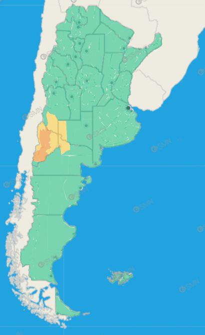 Neuquén:  Este de Loncopué – Este de Picunches – Este de Ñorquín – Oeste de Añelo – Oeste de Pehuenches – Sur de Chos Malal – Sur de Minas – Catán Lil – Collón Curá – Zapala – Zona baja de Aluminé – Zona baja de Huiliches – Zona baja de Lácar – Cordillera de Huiliches – Cordillera de Lácar – Sur de Aluminé