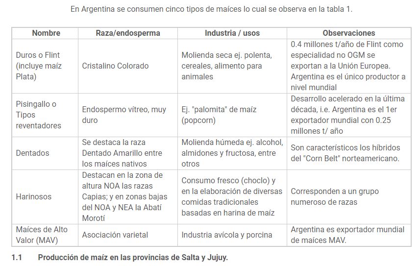 En las Provincias de Salta y Jujuy se cultiva maíz desde la era pre-colombina, siendobase alimentaria de las culturas andinas, con granvariabilidad genética, que en muchos casos se encuentra conservada por el aislamiento geográfico.