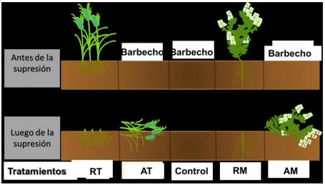 Cuando se suprime un cultivo de cobertura se aportan al suelo residuos vegetales provenientes tanto de partes aéreas como de las raíces, los que estimulan el crecimiento de los microorganismos del suelo.