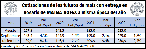 Como contraparte, podemos ver que, en el caso del maíz, esta situación se encuentra encuadrado en lo que dicta la teoría y en consonancia con lo sucedido en los últimos años.