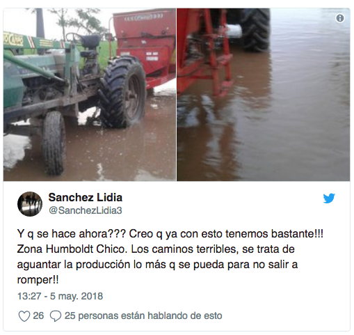 “En los últimos 15 días llovió casi 300 mm. En una semana pasamos de una sequía catastrófica a la inundación”, señaló .