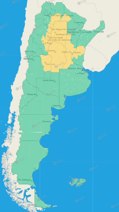 Tucumán: Burruyacú – Capital – Cruz Alta – Famaillá – Graneros – La Cocha – Leales – Simoca – Trancas – Yerba Buena – Zonas bajas de Chicligasta – Zonas bajas de Juan Bautista Alberdi – Zonas bajas de Lules – Zonas bajas de Monteros – Zonas bajas de Río Chico – Zonas bajas de Tafí Viejo