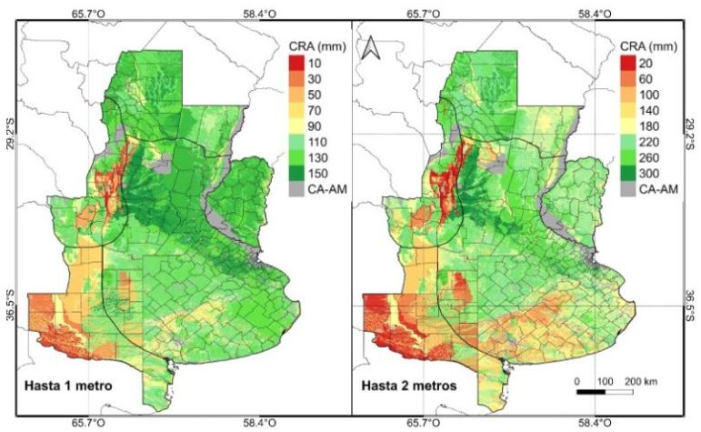 La disponibilidad de agua es el principal factor limitante de la producción de cultivos a escala global. De hecho, la cuantificación de la capacidad de los suelos para almacenar agua útil y monitorear su recarga es fundamental para lograr un mejor aprovechamiento de los recursos hídricos. En la región Chaco-Pampeana de la Argentina, las diferencias en el almacenaje de agua en los suelos impactan significativamente en la variabilidad de la producción de cultivos agrícolas y forrajeros. Por esto, especialistas del Instituto de Clima y Agua y del INTA San Luis desarrollaron mapas de capacidad de retención de agua útil, hasta uno y dos metros, o menos, donde existen limitaciones a la profundidad de las raíces. Ambos están disponibles en la plataforma GeoINTA (http://www.geointa.inta.gob.ar/).