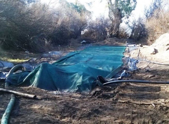 En el campo de su propiedad, en enero de este año se encontró un piletón de 30 metros de largo por 4 de ancho colmada de petróleo, bombas extractoras y otros elementos.