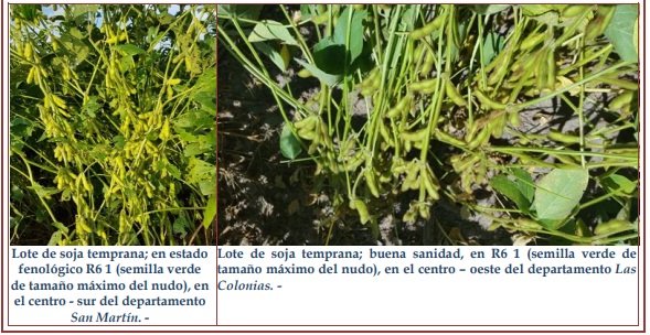 El diagnóstico para soja tardía, enunciado en el informe anterior fue: “como consecuencia de los diferentes escenarios y realidades, continuó mostrando una amplitud en sus estados, un 70 % en estado bueno a muy bueno, un 20 % en estado bueno a regular, con mediano desarrollo de estructura de plantas, no llegando al cierre de los surcos, un 7 % regular y un 3 % malo.