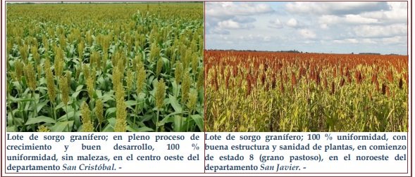 Cultivo que no estuvo al margen de los escenarios climáticos mencionados, pero ante sus características, de mayor rusticidad, resistencia y posibilidad de respuesta ante diversas aptitudes de suelos, fisiografías y ambientes, continuó su desarrollo y crecimiento, con bajos impactos, por la ausencia de precipitaciones. La sanidad de los cultivares fue muy buena y sin riesgos hasta el momento.