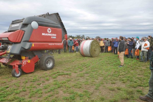 También surcó el campo de Oncativo la rotoenfardadora Mainero 5832 con sistema roto-cup para el corte de fibra, cámara variable y correas de 1,20 de ancho hasta 1,80 de diámetro, equipada con recolector de ancho extendido de hasta 2 metros.