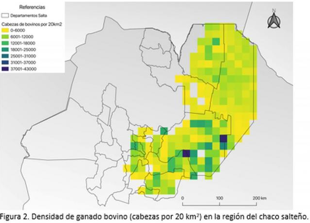 La región considerada contiene 890.000 mil de cabezas de ganado bovino, concentrando el 60% del stock provincial. Los departamentos Anta y Rivadavia agrupan el 57% del stock (Figura 2).