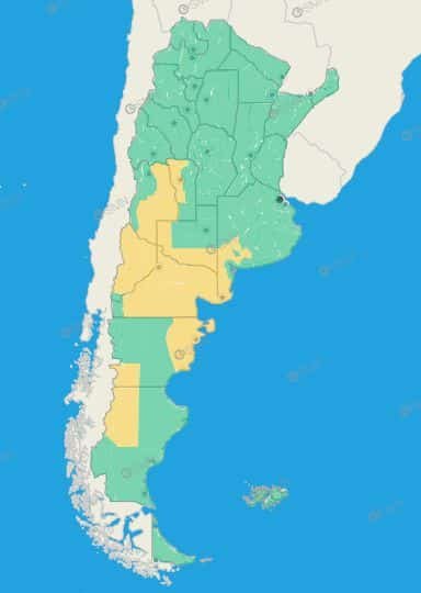 Buenos Aires: Costa de Patagones – Norte de Bahía Blanca – Oeste de Patagones – Oeste de Villarino – Puan – Zona baja de Coronel Pringles – Zona baja de Coronel Suárez – Zona baja de Saavedra – Zona baja de Tornquist