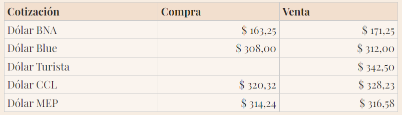 En tanto, las otras cotizaciones del dólar se ubican del siguiente modo: