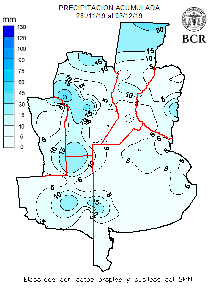 Parte del centro y norte de La Pampa y Córdoba, junto al norte de Santa Fe y una pequeña porción del este entrerriano recibieron 15 a 30 mm en los últimos 6 días. El paso de los frentes fríos deja decepción y gran preocupación en el sector.