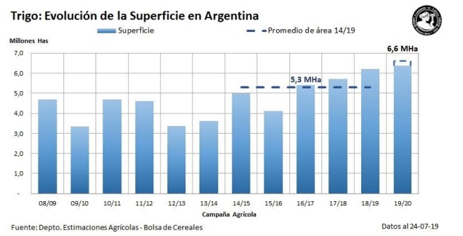 La siembra de trigo entró en la etapa final. En la última semana registró un progreso de 4,3 puntos porcentuales, alcanzando a cubrir el 96,4 % de las 6.600.000 hectáreas estimadas para la campaña 2019/20.