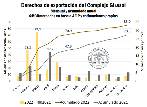 Nota N°4: El complejo girasol tributó en el 2022 cerca de US$ 85 millones en concepto de derechos de exportación.
