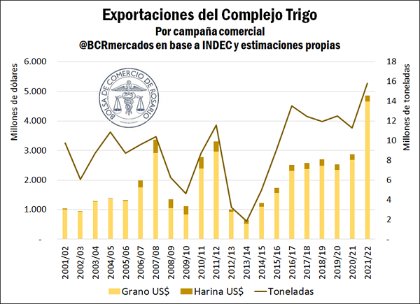 El trigo argentino cerró la campaña 2021/22 con exportaciones por más de US$ 4.850 millones