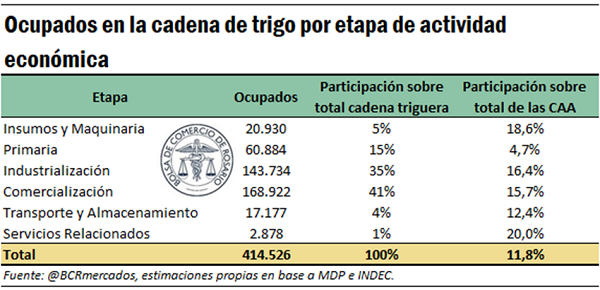 La cadena triguera es una importante generadora de empleo privado a nivel federal, con más de 414.000 puestos de trabajo