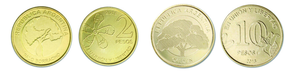 Por otra parte, el BCRA dispuso la emisión de las monedas de $2 y de $10, con las imágenes del palo borracho y el caldén, respectivamente. Estas monedas corresponden al nuevo cono monetario de la Línea Peso Árboles de la República Argentina.