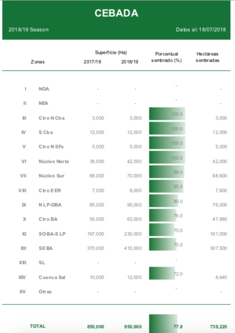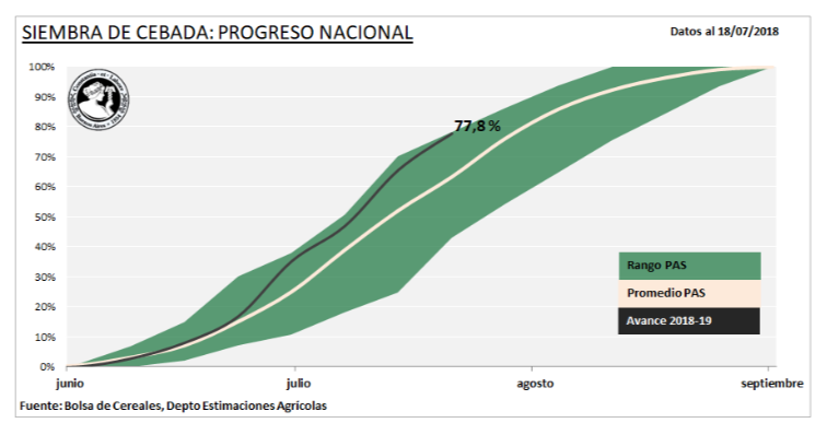 LAS BUENAS CONDICIONES CLIMÁTICAS PERMITIERON AVANZAR CON LA SIEMBRA DE CEBADA EN BUENOS AIRES Y LA PAMPA, MANTENIENDO UN ADELANTO INTERANUAL DE 12 PUNTOS POCENTUALES