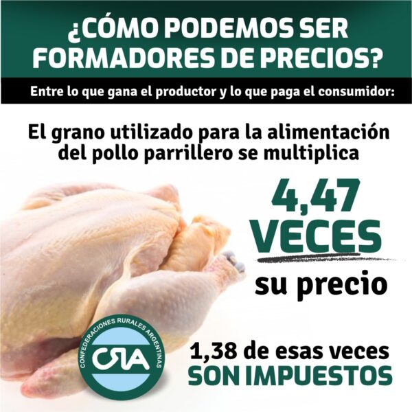 Si el grano utilizado para la alimentación del pollo parrillero se multiplica 4,47 veces y 1,38 son IMPUESTOS.