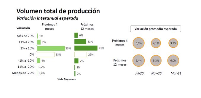 Respecto a las actividades lecheras, el 68% de las empresas tamberas encuestadas espera aumentar la producción total en los próximos doce meses con un incremento promedio del 6% respecto del año anterior, el cual se planea alcanzar tanto en base a un aumento de la cantidad de vacas en ordeñe como de la mejora en las producciones individuales logradas.