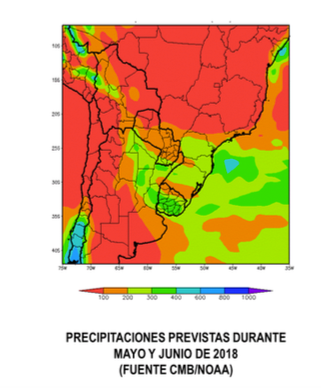 Debido a que se atraviesa la transición entre la campaña agrícola que termina y la que está comenzando, la tendencia positiva expuesta, todavía no se encuentra firme, y podría sufrir ajustes positivos o negativos en particular, debe tenerse en cuenta que, el fenómeno de “La Niña”, que fue uno de los principales factores que se hicieron sentir durante la campaña 2017/2018, no se disipó, sino que migró hacia el Hemisferio Norte, donde viene afectando a los cultivos de invierno en los EE. UU. y manteniendo una tendencia firme en los mercados.
