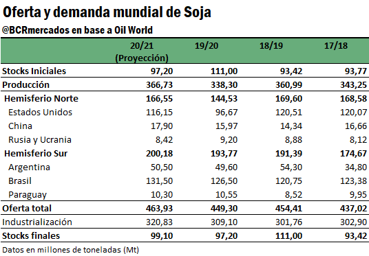 En su último informe, el organismo alemán prevé un panorama ajustado las cadenas globales de oleaginosas, producto de una reducción en su estimación de stocks iniciales, sumado a una rebaja en las previsiones de producción en los Estados Unidos, Argentina y Brasil. Al mismo tiempo, destaca la política de venta de los productores en nuestro país y la fuerte demanda por parte de China, como factores que vienen impulsando la escasez relativa y la suba en los precios de la oleaginosa.