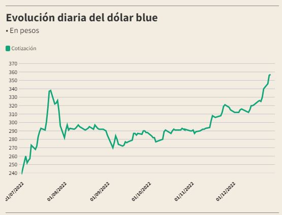 El dólar blue sigue avanzando y alcanza un nuevo récord nominal este miércoles. El precio del billete en el mercado paralelo registra un alza de $ 1 y se acerca al umbral de $ 360, mientras los dólares financieros repuntan hasta 2,8% desde las primeras operaciones de la jornada.