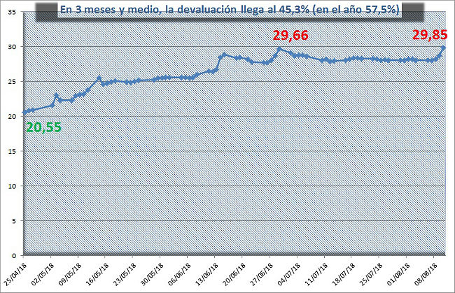 Por otro lado, también presiona al mercado cambiario el recorte del monto subastado a diario por el Banco Central provenientes del acuerdo con el Fondo Monetario Internacional (FMI). De los u$s 100 millones iniciales, el volumen a licitar bajó a u$s 75 millones de entre el miércoles y viernes pasados, hasta los actuales u$s 50 millones.