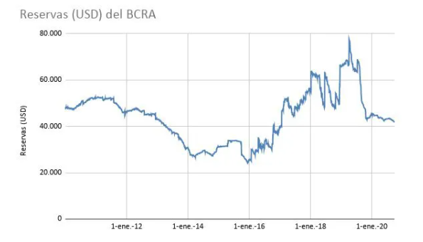 Si miramos únicamente el total de reservas internacionales del Banco Central la situación no parece ser muy grave. De hecho, el nivel de reservas parece estar en el promedio de los últimos años. Hoy estamos en u$s 41.379 millones: