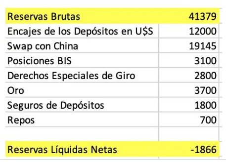 Imaginando que consigue activar todo el swap (algo improbable), las reservas líquidas pasarían a ser de 17.279 millones.
