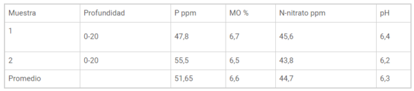 El laboratorio recomendó aplicar 200 kg de fosfato diamónico/ha y muestrear peciolo a partir de 50 días para N. Antes de la siembra se realizó la aplicación manual del fertilizante fosfatado, por surcos, a razón de 350 kg/ha. No se aplicó urea.