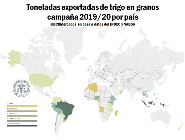 Con el comienzo de diciembre se dio inicio a una nueva campaña comercial para el trigo nacional dejándose atrás el ciclo 2019/20. En los últimos 12 meses, las exportaciones nacionales han mostrado grandes cambios respecto al desempeño de años anteriores. La modificación en los destinos del cereal cosechado en Argentina es muy evidente, y revela considerables fluctuaciones en la política exportadora nacional.